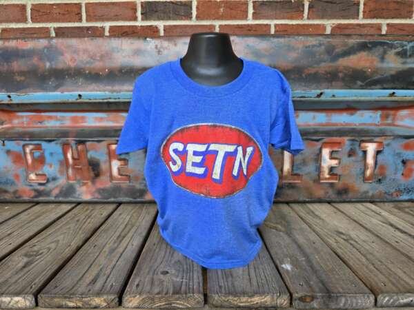 Gildan soft style in heathered royal blue. Southeastern Truck Nationals design on front chest. 65% polyester/35% cotton.